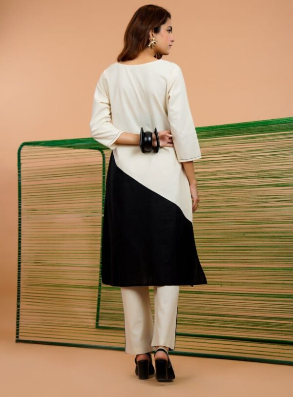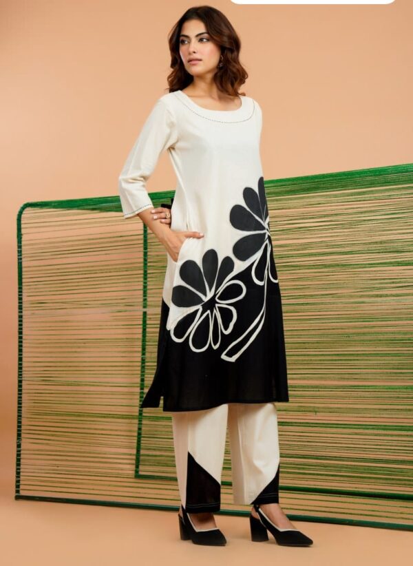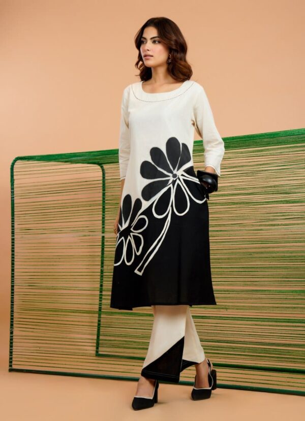 The classic monochrome palette makes it easy to style for office wear, casual outings, brunch dates, or relaxed festive gatherings. Lightweight, stylish, and effortlessly chic, this set is perfect for women who love minimal yet statement ethnic-fusion fashion.