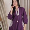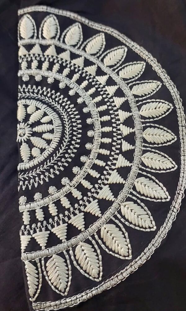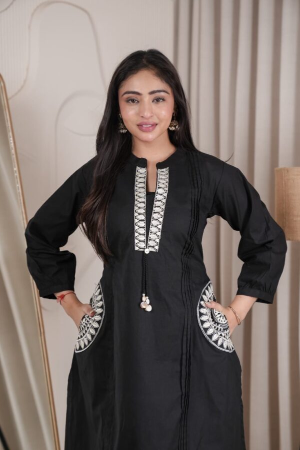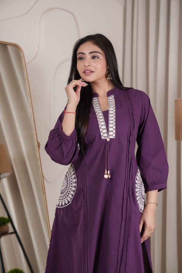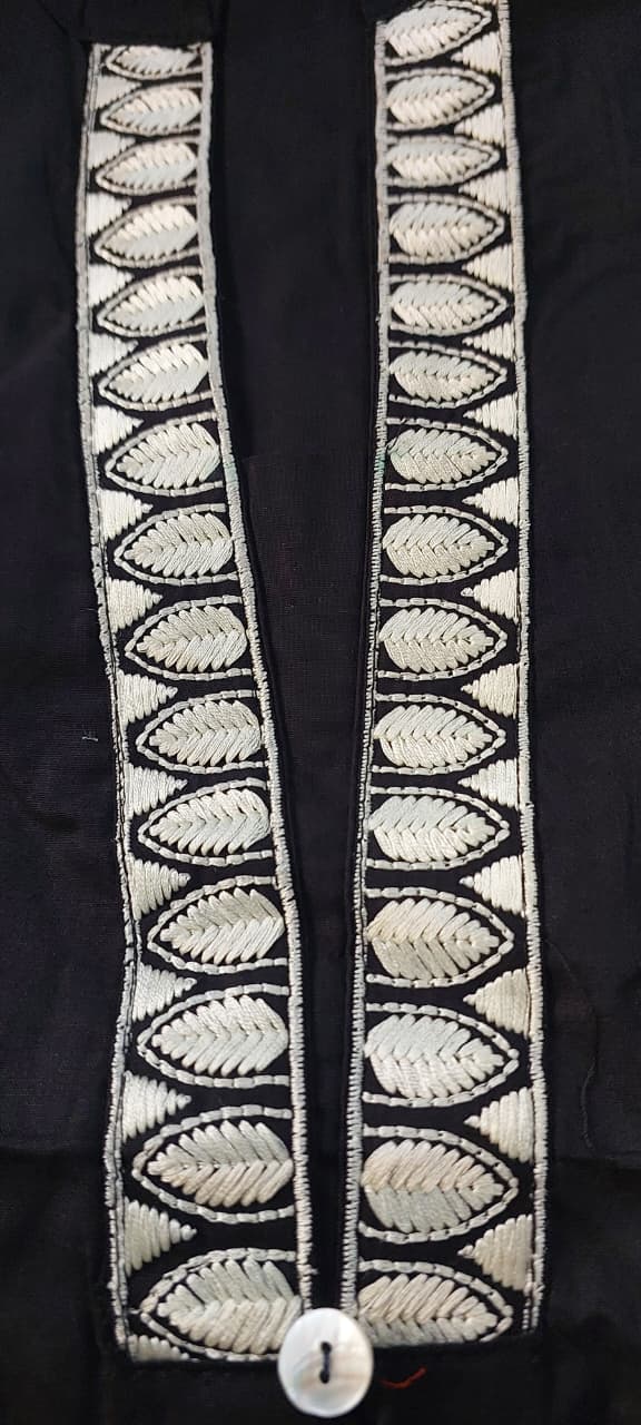 - Elegant embroidery on neckline with tassel detailing