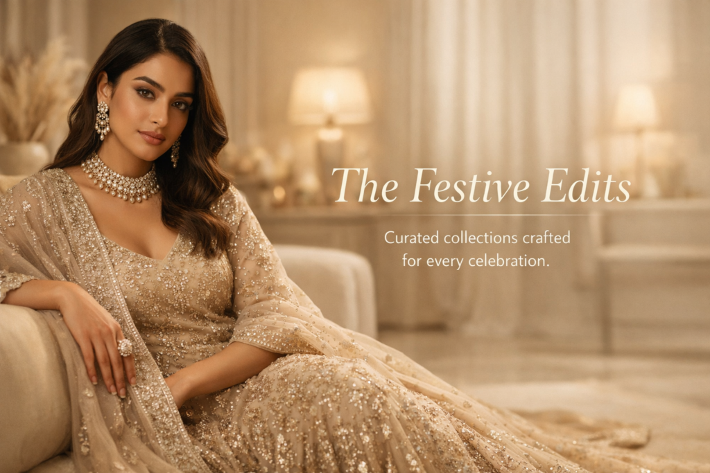 Explore our carefully curated festive edits designed for weddings, celebrations, and refined everyday luxury.